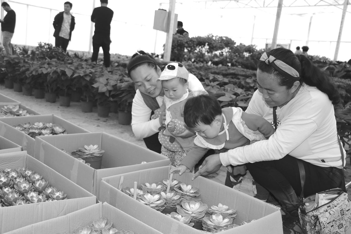 4月15日,皂户李镇首家花卉盆景展销中心在后找李村挂牌营业,五彩斑斓的花卉、造型优美的盆景、肉质肥厚的多肉引来群众争相购买。