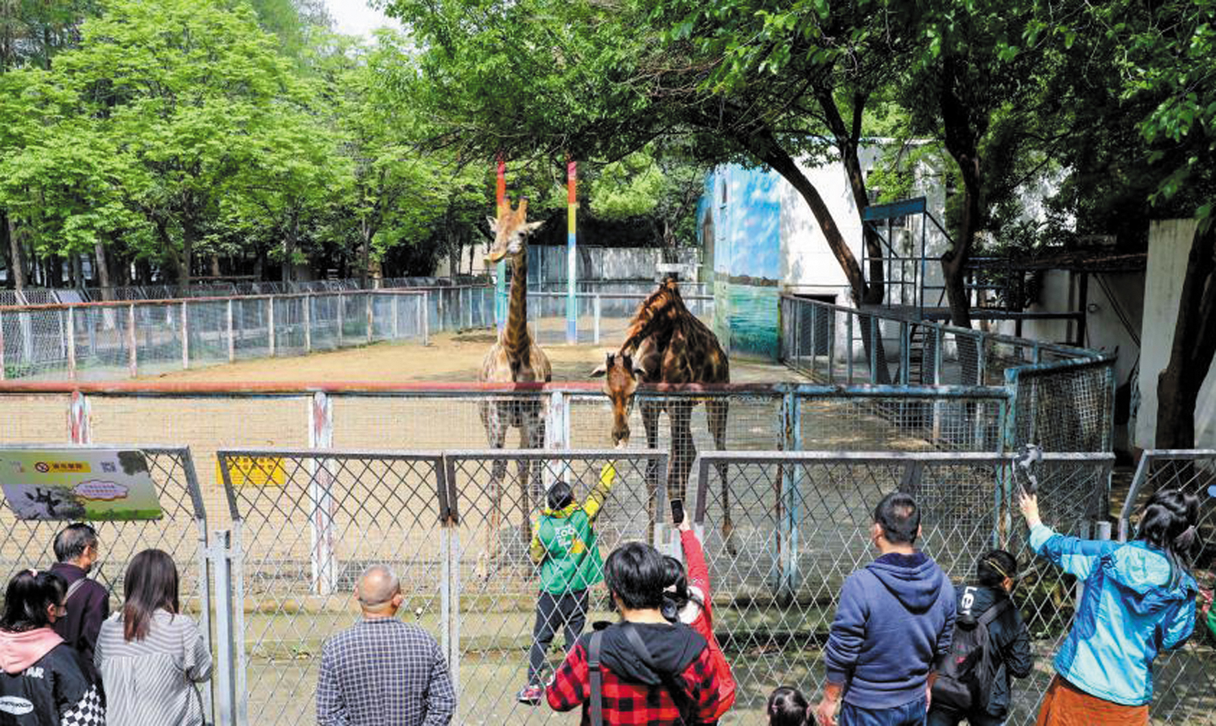 4月22日,游客在武汉动物园内游玩。当日,武汉动物园恢复开放。疫情防控阶段每日限流1.5万人次,采取无接触的售票方式。园内露天动物场馆正常开放,大熊猫馆、河马馆、犀牛馆、狒狒馆等四个场馆仅开放室外区域。