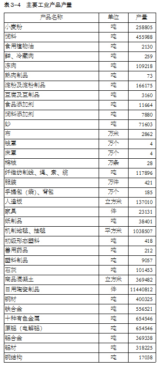 主要工业产品产量详见表3-4。
