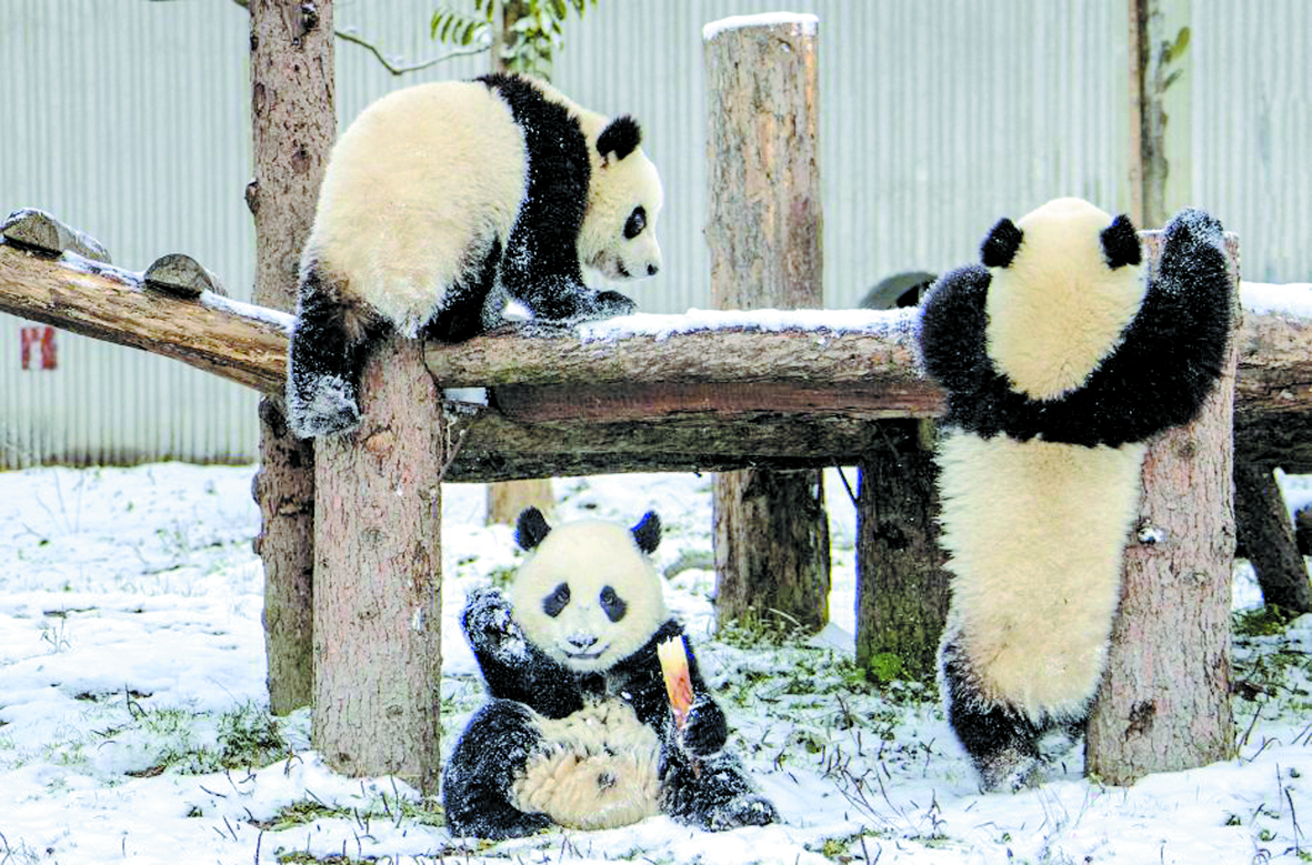 近日,四川阿坝中国大熊猫保护研究中心卧龙神树坪基地迎来第二场大雪。雪后的大熊猫园银装素裹,大熊猫在雪地里嬉戏,享受降雪降温带来的乐趣,也为游客带来快乐。