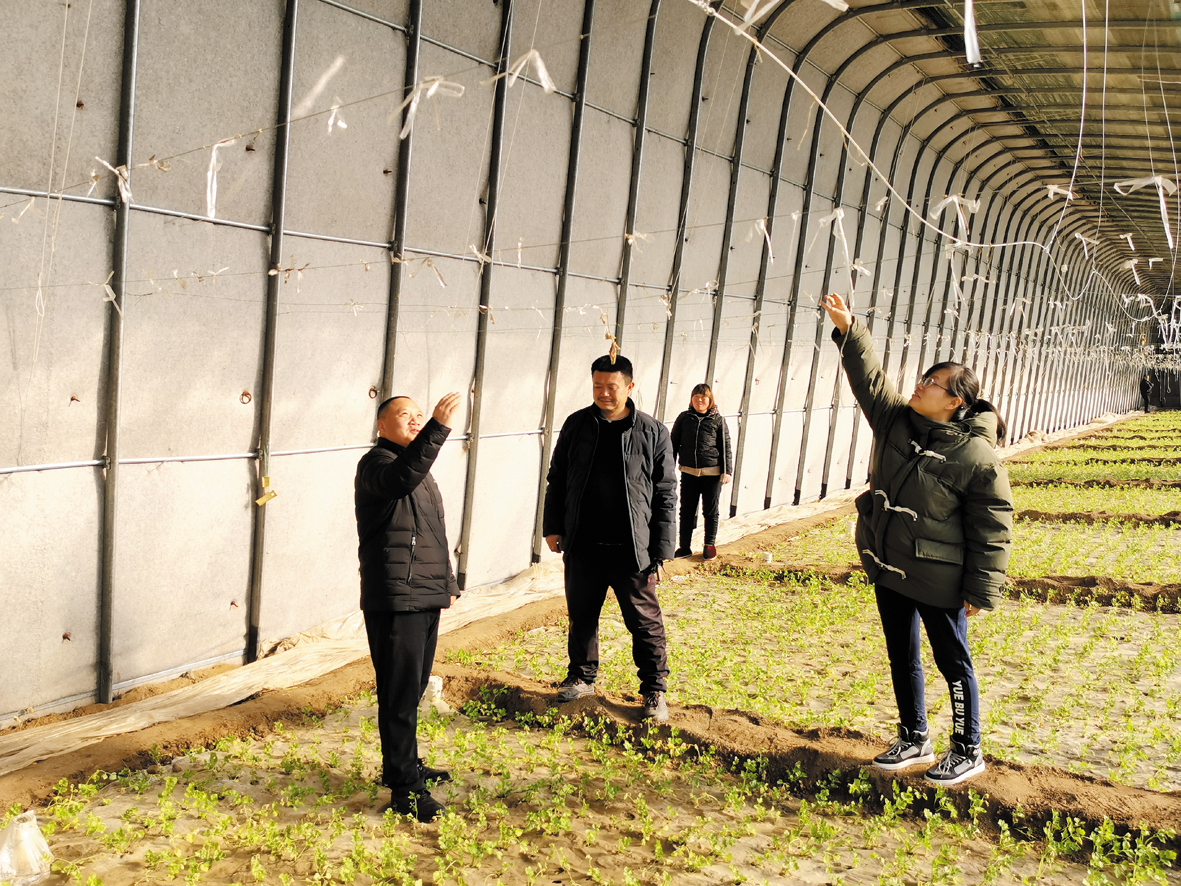 寒潮来袭,气温骤降。1月6日一大早,县司法局驻桑落墅镇田单村第一书记郑光雯(右一)就带领农技人员深入田间大棚,科学指导农户做好冬季管护工作。