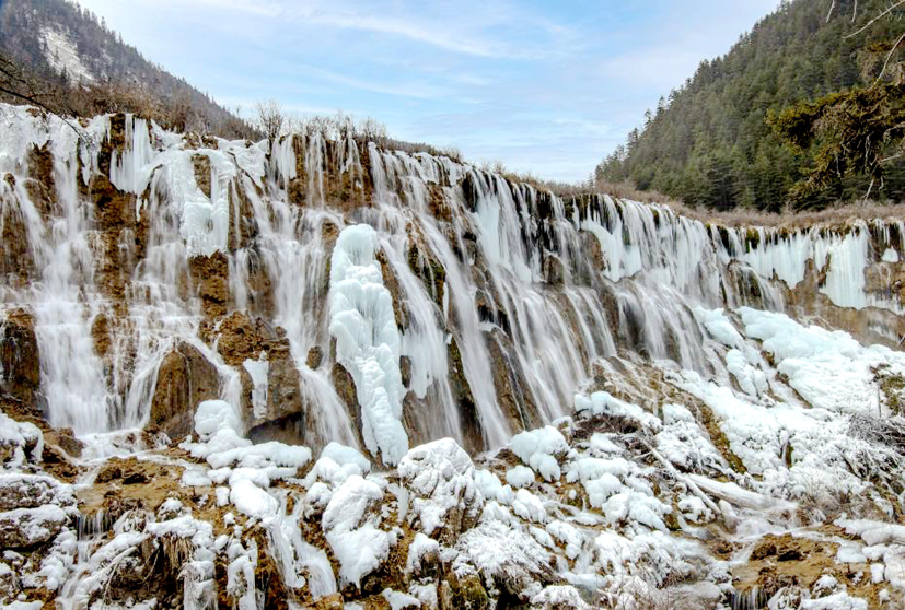 冬日九寨沟山林冰瀑相映成趣美不胜收