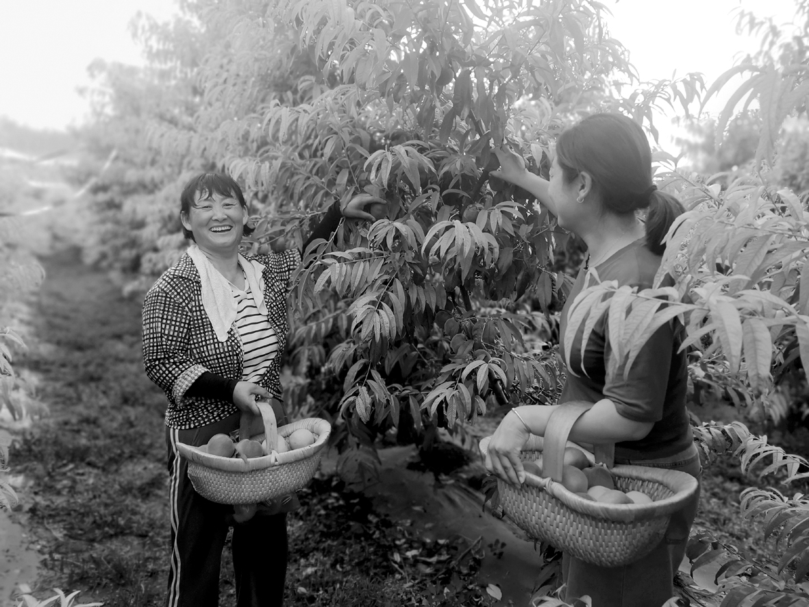 7月2日,在石庙镇东庞村20亩桃园里,一个个油桃、蜜桃挂满了枝头,随风摇摆,像一个个调皮的“小孩”露出了笑脸,惹得游人驻足采摘。