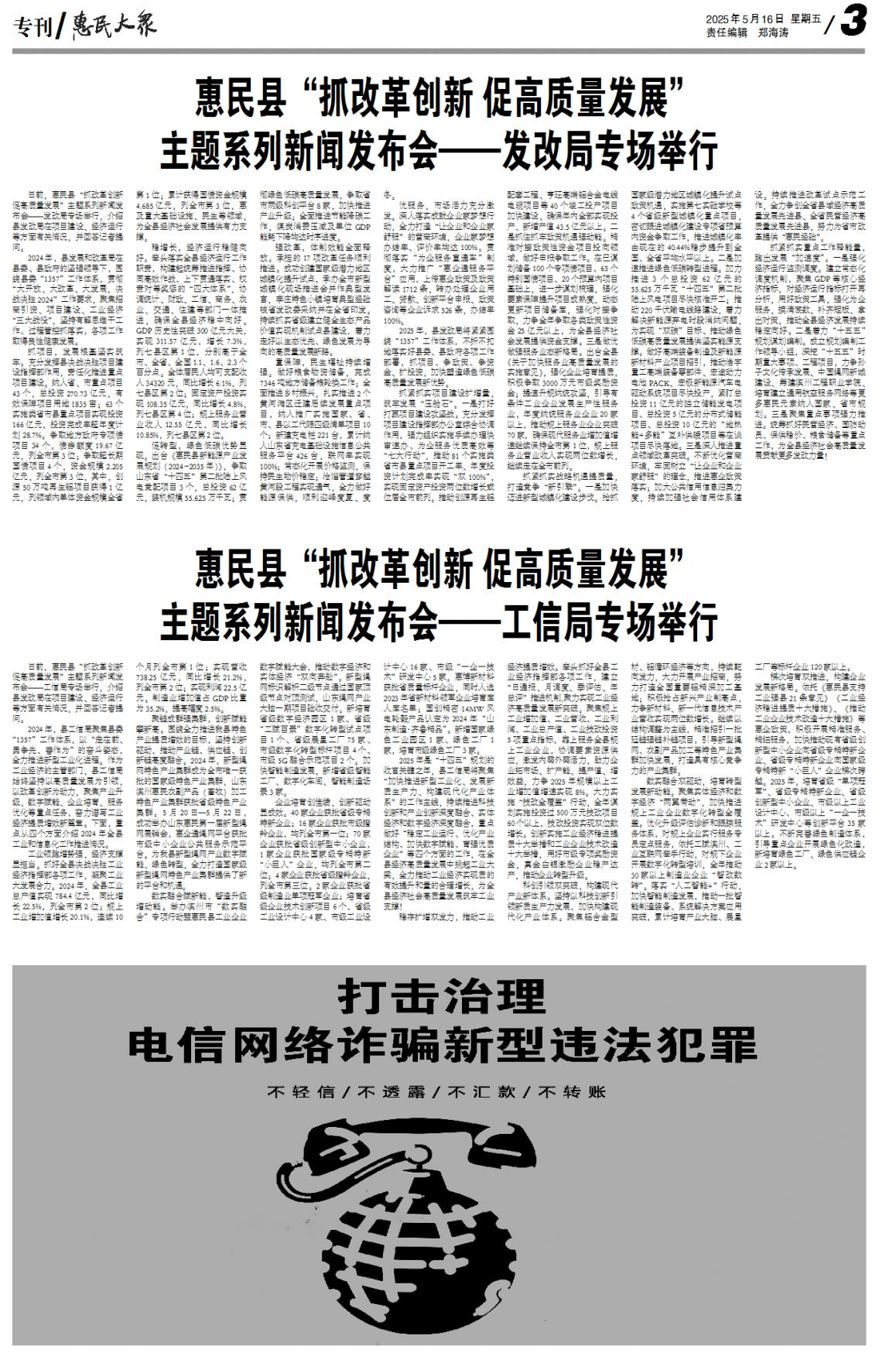 惠民讯 5月12日,我县召开高质量发展工作推进会议,全面分析去...